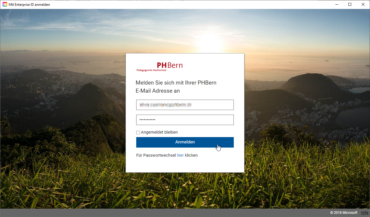 Geben Sie erneut die Logindaten Ihres PHBern Accounts ein und klicken Sie auf Anmelden.