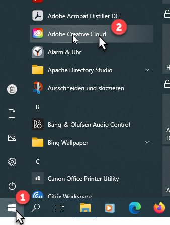 Öffnen Sie die Anwendung Adobe Creative Cloud über Start -> Programme.