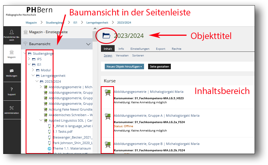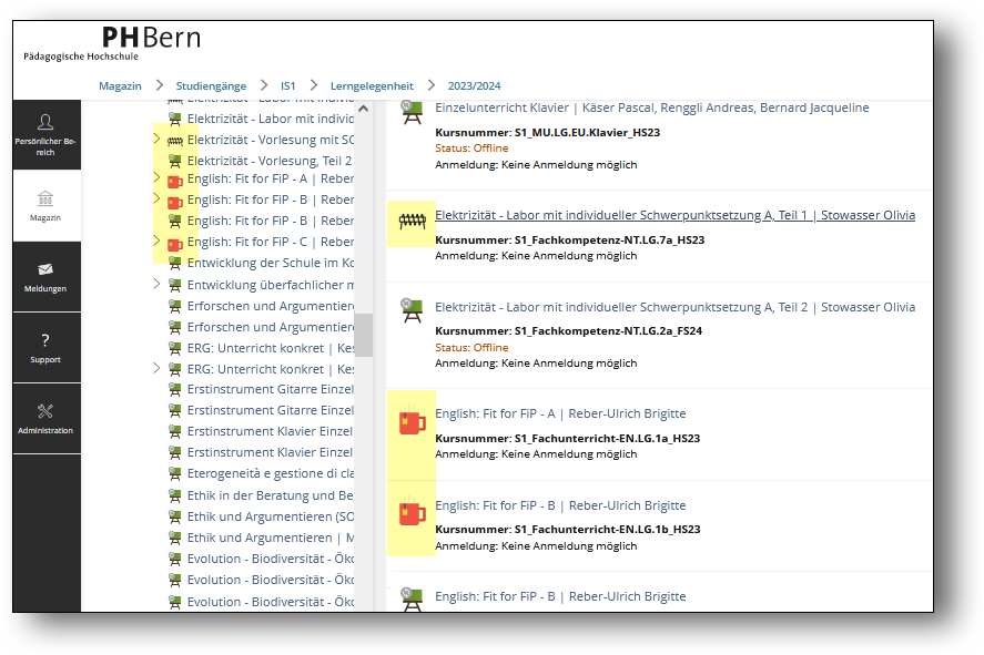 Angepasste Icons im Verzeichnisbaum und in der Kursanzeige