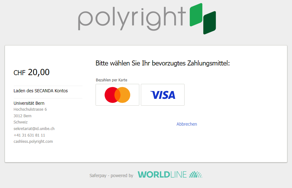 Guthaben der PHBern-Karte aufladen mit SECANDA
