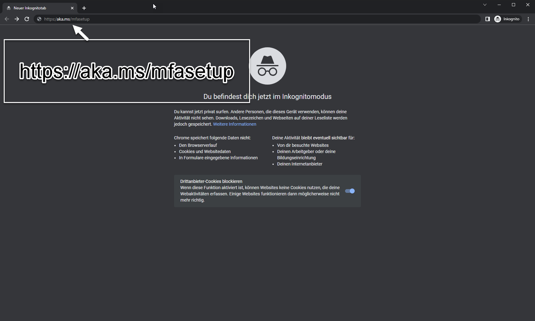 Kopieren Sie diesen Link und öffnen Sie diesen im privaten Browser-Fenster.