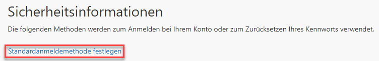 Vergessen Sie am Schluss nicht mit Klick auf Standardanmeldemethode festlegen wieder den Authenticator auszuwählen (App-basierte Authentifizierung - Benachrichtigung).