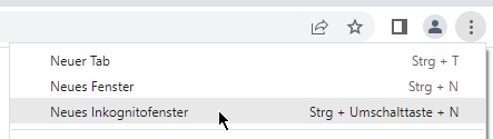 Ein neues «Inkognito»-Fenster öffnet sich.