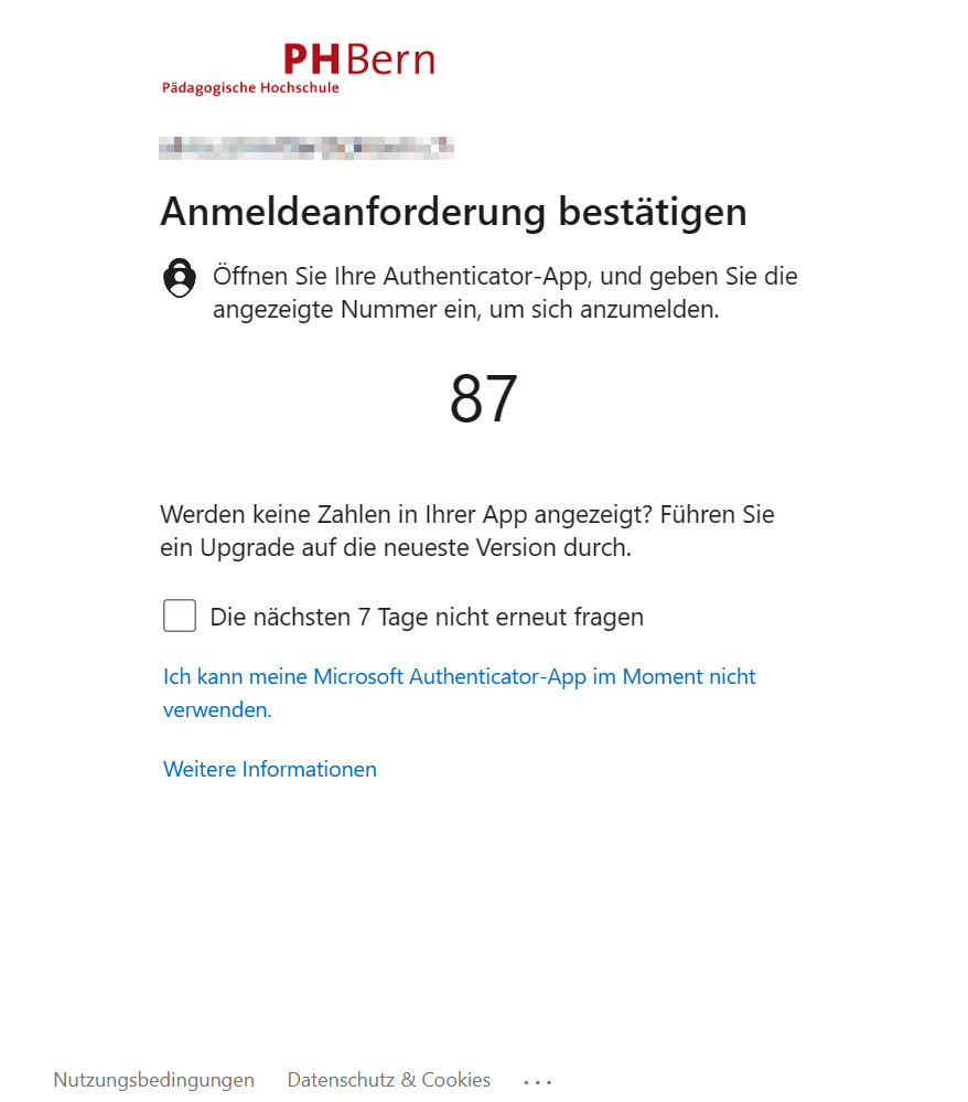 Authentifizieren Sie sich mit Ihrer eingerichteten MFA-Methode.