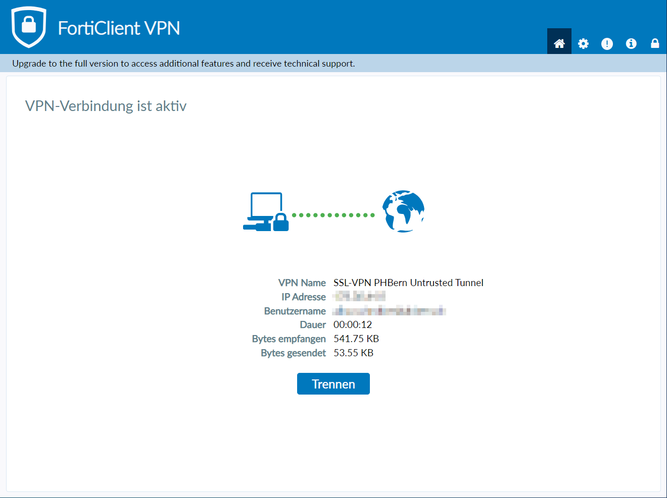Verbindungsname:SSL-VPN PHBern Untrusted Tunnel