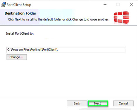 Destination Folder mit Next bestätigen