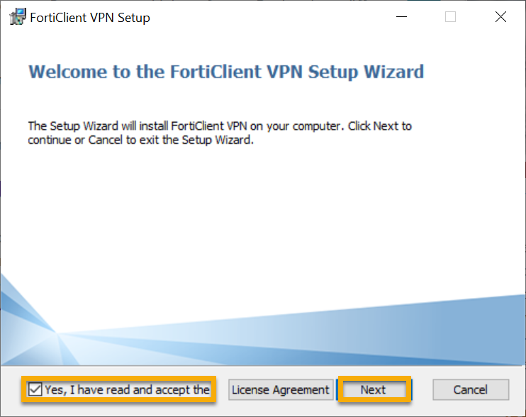 License Agreement bestätigen und mit Next weiter