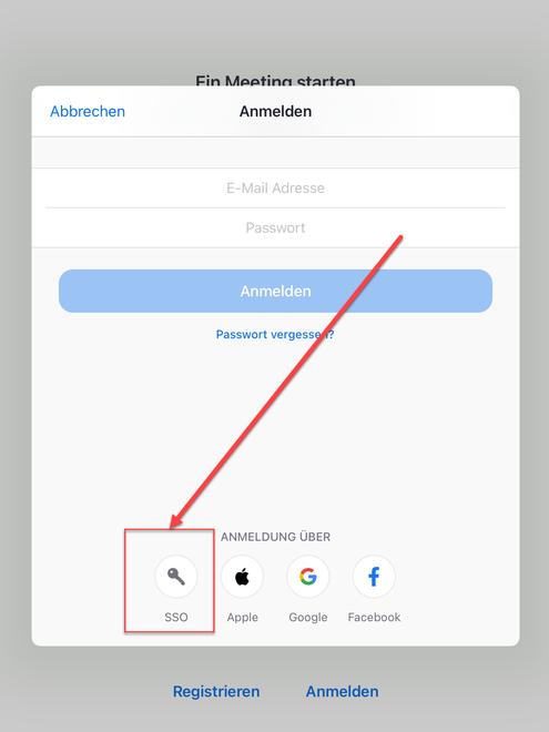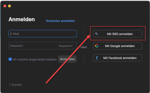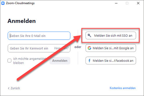 Wählen Sie "Anmeldung über SSO"